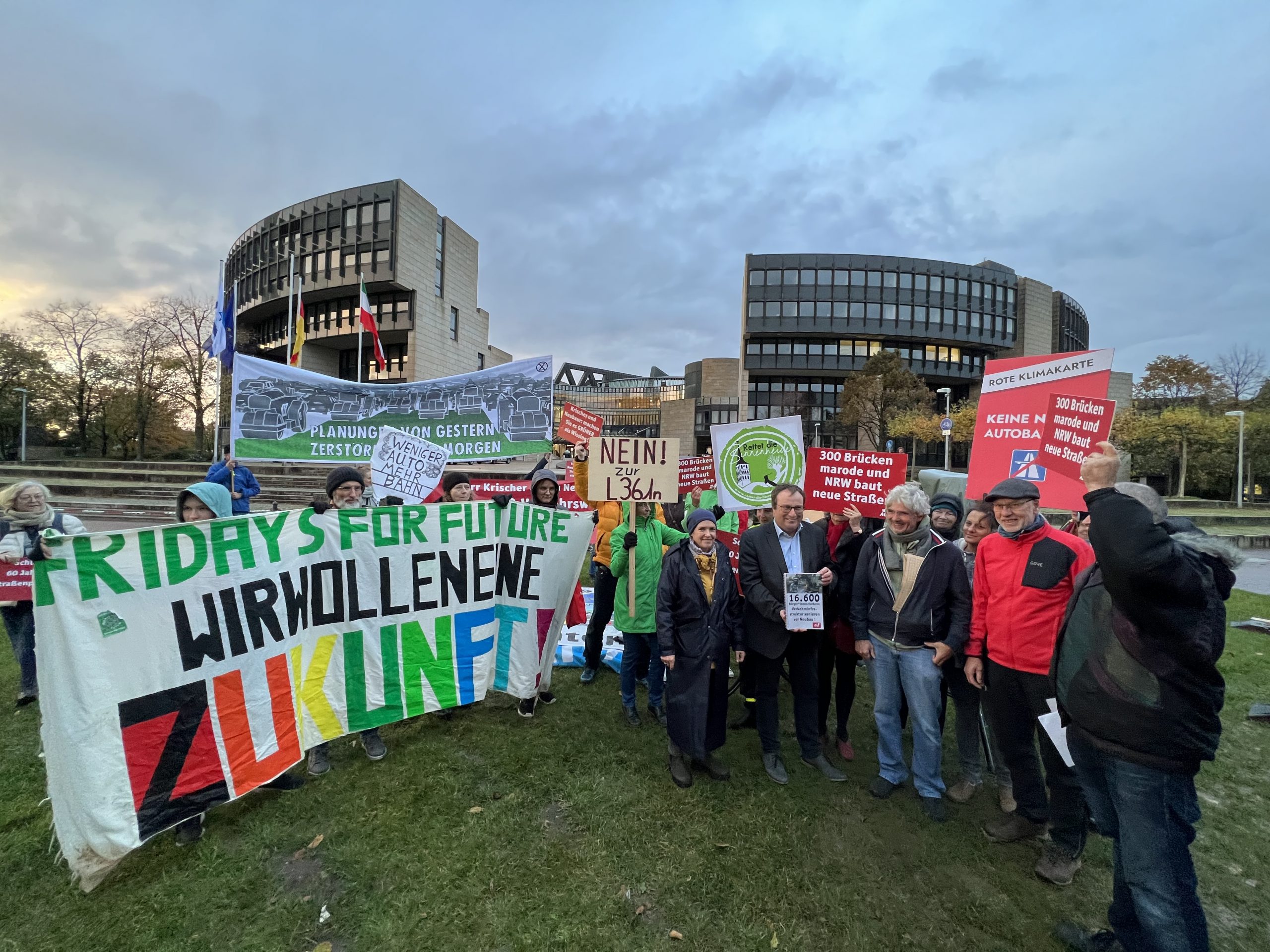 Übergabe der WeAct- Petition „Verkehrsinfrastruktur sanieren vor Neubau“ am 04.11.2023 an Verkehrsminister Krischer vor dem Landtag NRW, Düsseldorf